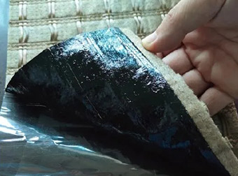 (3) 在-5℃施工時(shí),傳統(tǒng)的防裂布由于噴灑出的熱粘層油迅速冷卻,失去黏附性能,無(wú)法與路面粘結(jié)。自粘式應(yīng)力布耐低溫,可以在-5℃時(shí)進(jìn)行正常施工,依然保持良好的黏附性,與路面有效的粘結(jié),解決了現(xiàn)有的防裂布季節(jié)性施工難題;